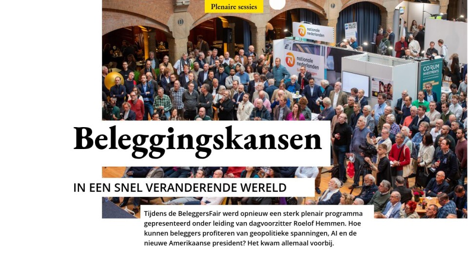Tijdens de BeleggersFair werd opnieuw een sterk plenair programma gepresenteerd onder leiding van dagvoorzitter Roelof Hemmen. Hoe kunnen beleggers profiteren van geopolitieke spanningen, AI en de nieuwe Amerikaanse president? Het kwam allemaal voorbij.